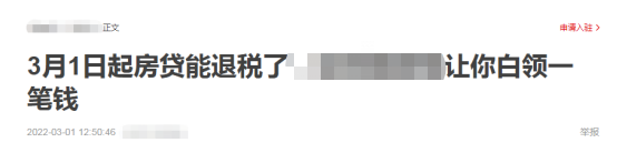 近日不少網絡平臺出現了許多類似“買房滿一年有退稅”、“有房貸的3月1日就可以退稅”的吸睛文章和視頻。