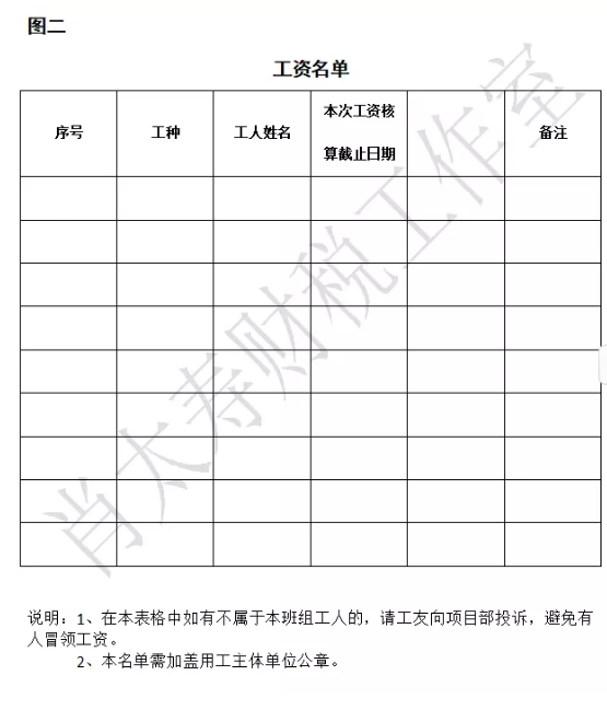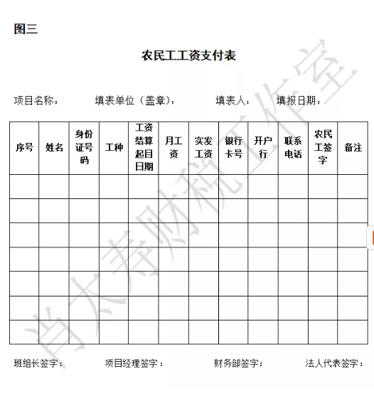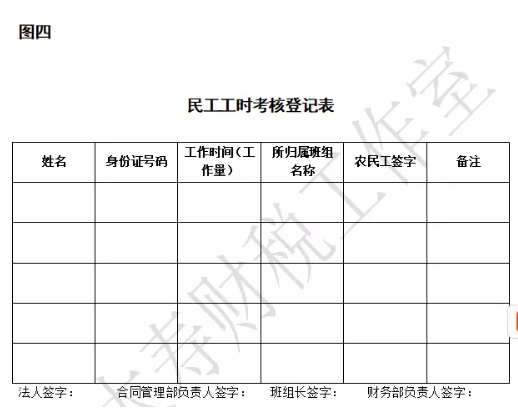3,包工頭(班組長)必須制作簽字并按手印的“農民工勞務款結算單”、“農民工完成的勞務工程量計量單”、“農民工工資表”、“農民工工時考勤表”、民工本人簽字的銀行卡復印件等(需民工簽字處必須是民工本人簽字并按手印)。提供以上表格的紙質文檔的同時將電子數據文檔等內容以電子郵件形式發到勞務公司的指定郵箱,包工頭(班組長)雇傭的農民工的工資卡由包工頭(班組長)自行辦理,包工頭(班組長)報送勞務公司經簽字并按手印的所有表格及文檔,并對其真實性負責。 |