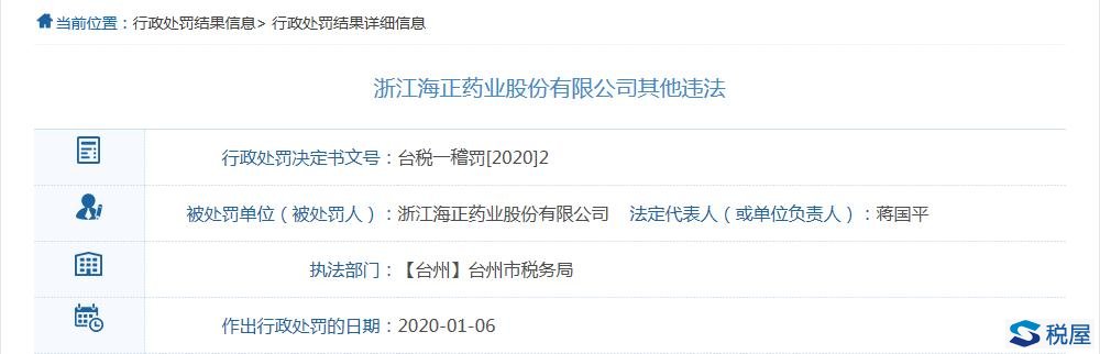 浙江政務服務網:浙江海正藥業股份有限公司其他違法