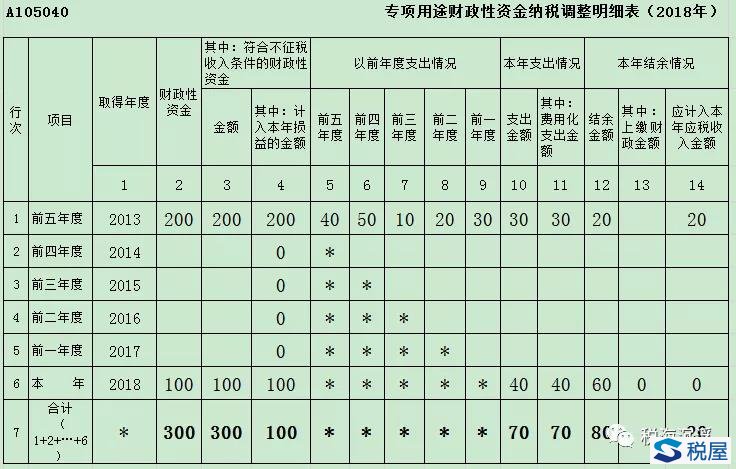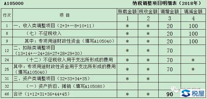 不征稅收入處理:2018年分別使用2013年、2018年的財政資金30萬元和40萬元用于研發,由于其是不征稅收入對應的支出,不允許在所得稅前進行扣除,應調增應納稅所得額70萬元