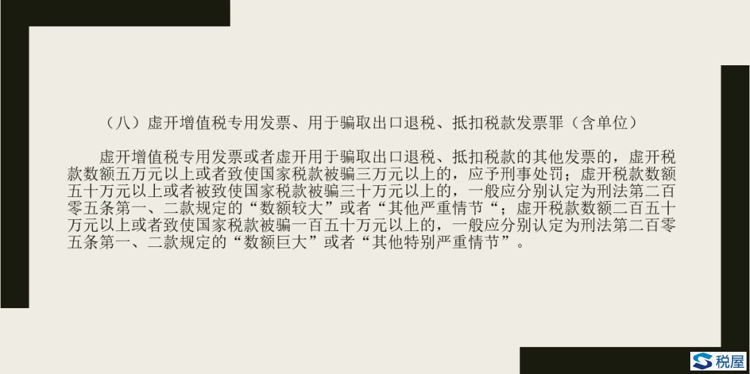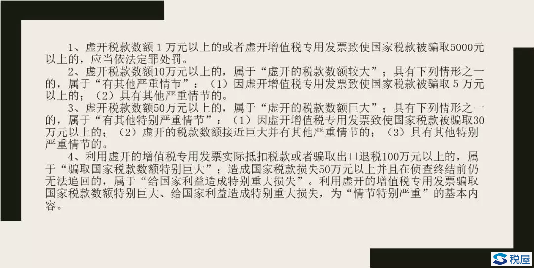 其中,就虛開增值稅專用發票罪的定罪量刑數額標準規定如下: