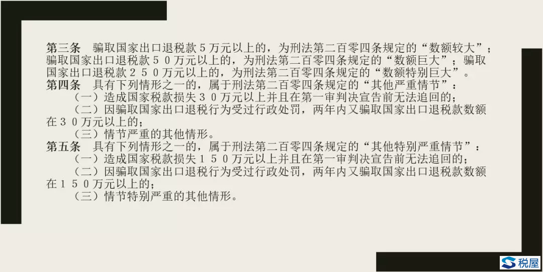 最高人民法院《最高人民法院關于審理騙取出口退稅刑事案件具體應用法律若干問題的解釋》(法釋[2002]30號)第三、四、五條規定如下: