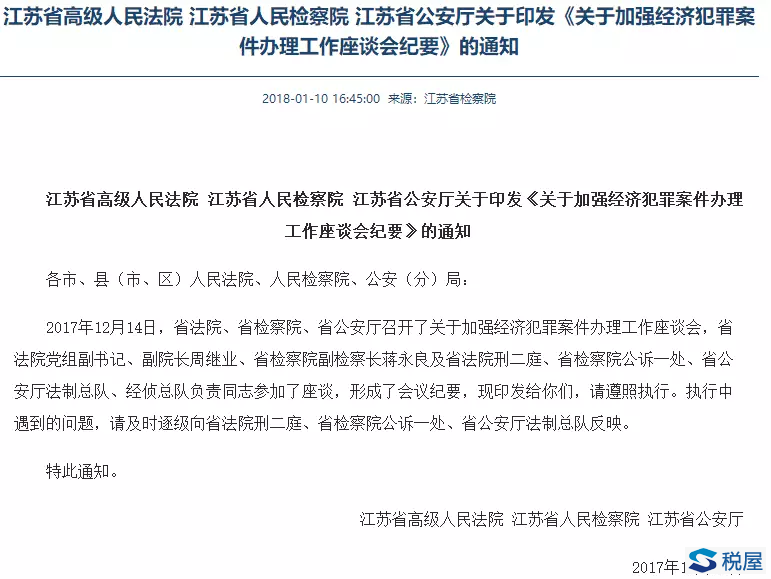 三、江蘇省高級人民法院江蘇省人民檢察院江蘇省公安廳關于印發《關于加強經濟犯罪案件辦理工作座談會紀要》的通知