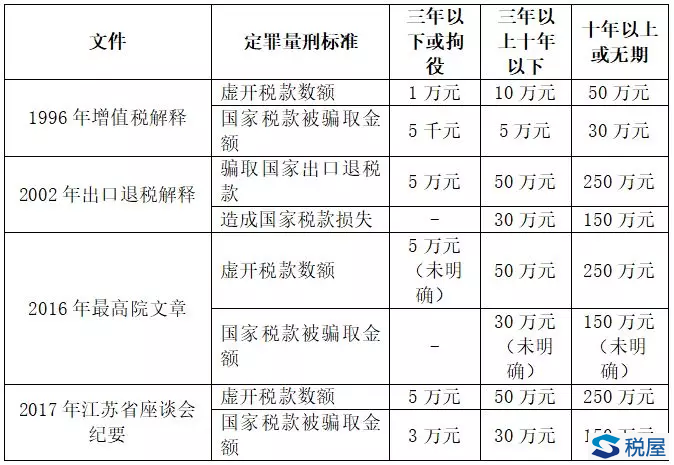 2014年11月27日,最高人民法院發布《最高人民法院研究室關于如何適用法發[1996]30號司法解釋數額標準問題的電話答復》(法研[2014]179號),支持了西藏自治區高院關于《最高人民法院關于適用〈全國人民代表大會常務委員會關于懲治虛開、偽造和非法出售增值稅專用發票犯罪的決定〉的若干問題的解釋》(法發[1996]30號)不符合罪刑相適應原則以及對虛開增值稅專用發票罪的量刑數額標準可以參照適用《最高人民法院關于審理騙取出口退稅刑事案件具體應用法律若干問題的解釋》(法釋[2002]30號)的觀點。2016年7月20日,人民法院報刊登了最高人民法院研究室刑事處黃應生先生的《虛開增值稅專用發票案件的數額標準確定》一文,詳細介紹了法研[2014]179號文所涉問題的由來、相關考慮及經過,將虛開增值稅專用發票罪的量刑數額標準問題再度帶入法律人視野。江蘇省高級人民法院、江蘇省人民檢察院、江蘇省公安廳于2017年12月14日召開了加強經濟犯罪案件辦理工作座談會,進一步明確了虛開犯罪的定罪量刑數額標準。本文將全面梳理虛開增值稅專用發票罪的量刑數額標準,以饗讀者。