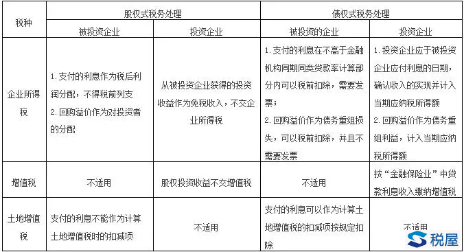 不同稅務處理方式對混合型投資雙方的影響