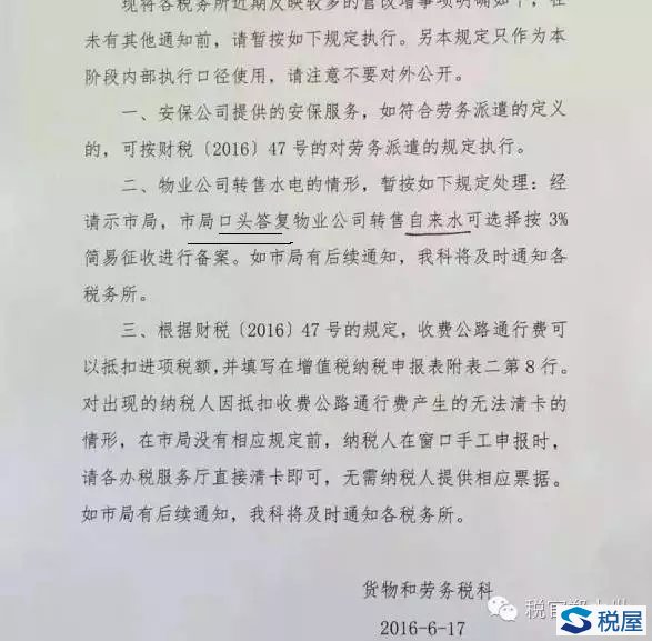 有法不依,別以為就能得利,長遠看,受害的是所有人!再回到某市的文件,其中是如此表述的:市局口頭答復一般納稅人物業轉售自然水可按3%。 ??