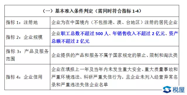 “1”:“四項基本準入條件+任意一項重要指標”可直接認定為科技型中小企業