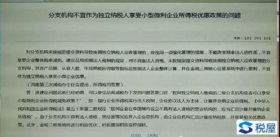 國家稅務總局所得稅司副司長劉寶柱:現行企業所得稅實行法人稅制,企業應以法人為納稅主體,計算從業人數、資產總額等指標,即匯總納稅企業的從業人數、資產總額應包括分支機構的數據。