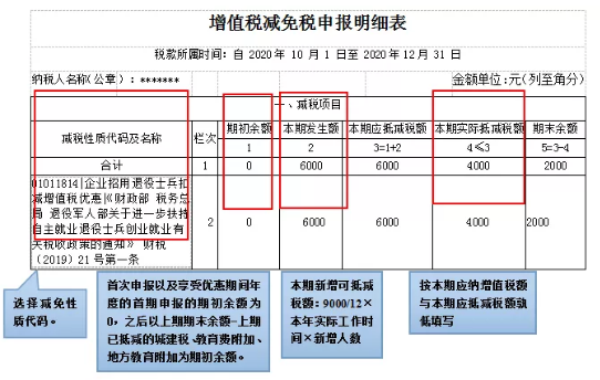 減免稅總額=∑每名重點群體人員或本退役士兵年度在本企業工作月數÷12×具體定額標準。
