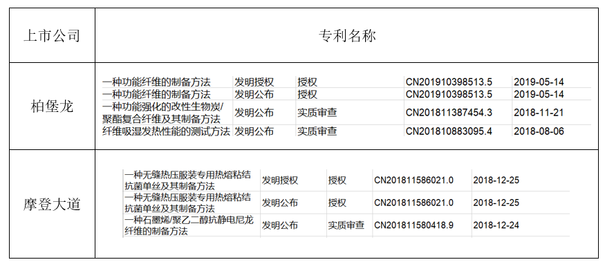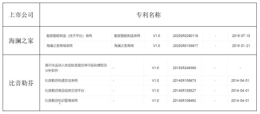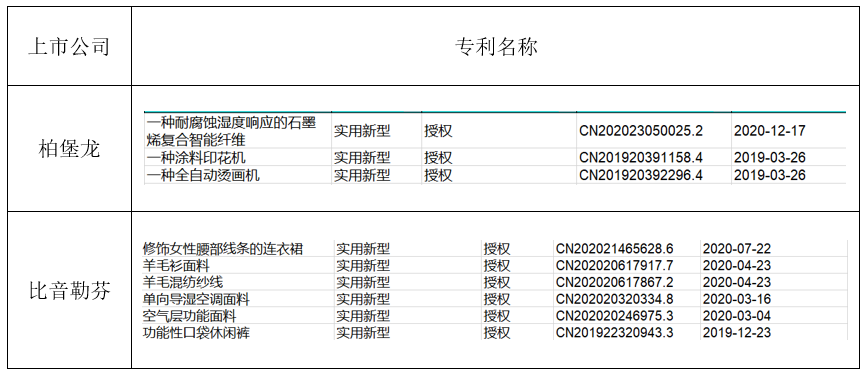 服裝企業進行的研發活動需實際性開發新技術、新產品、新工藝,參考同行業上市公司研發專利有以下類型: