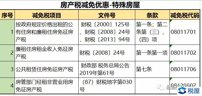 第三類,與特殊房屋相關的優惠,一共有4項。主要是指廉租房、公租房等性質比較特殊的房屋。