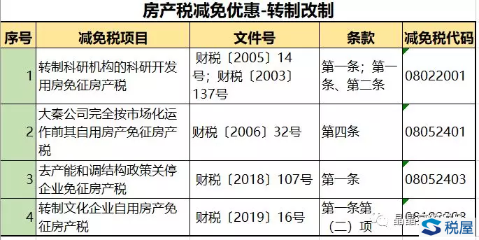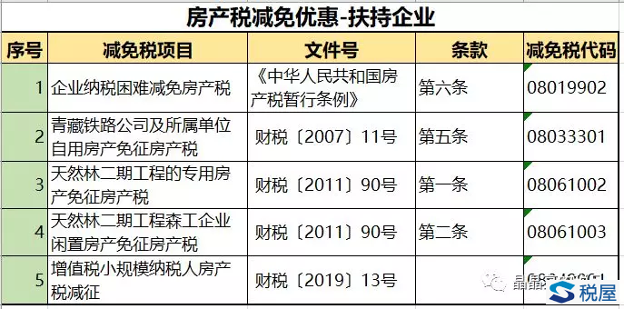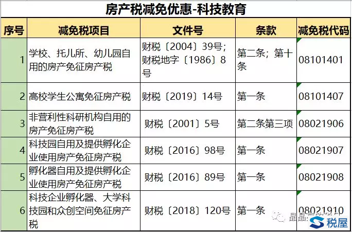 根據總局發布的減免稅代碼表,截止2019年7月,房產稅共有減免稅優惠項目45個,我按照便于記憶的原則,將上述優惠項目分為了12類,具體分類情況如下: