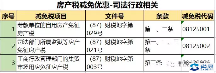 第十二類,與司法行政相關的優惠,一共有3項,分別是勞教單位、監獄、工商局集貿市場用房。