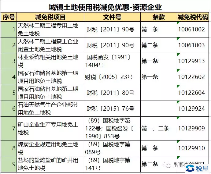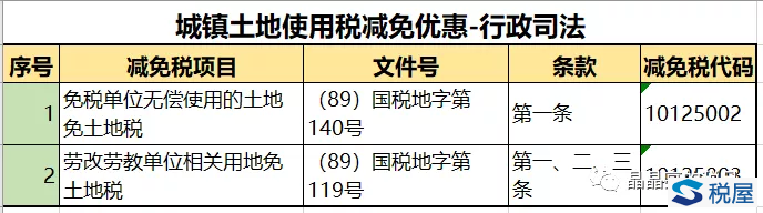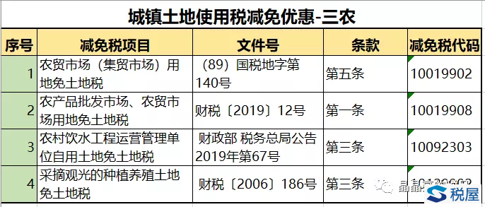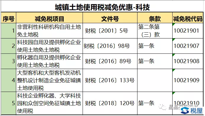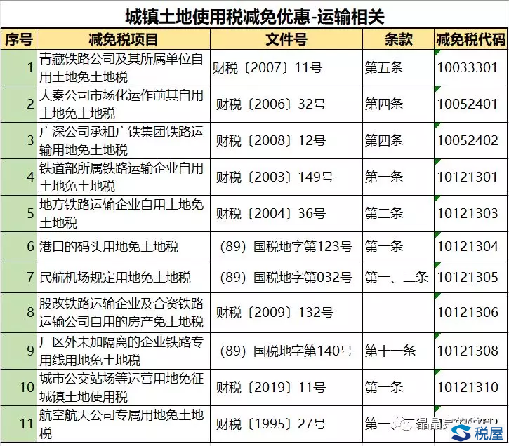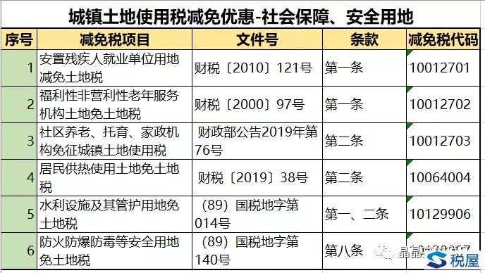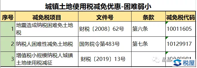城鎮土地使用稅減免稅項目總結(2019年7月版)