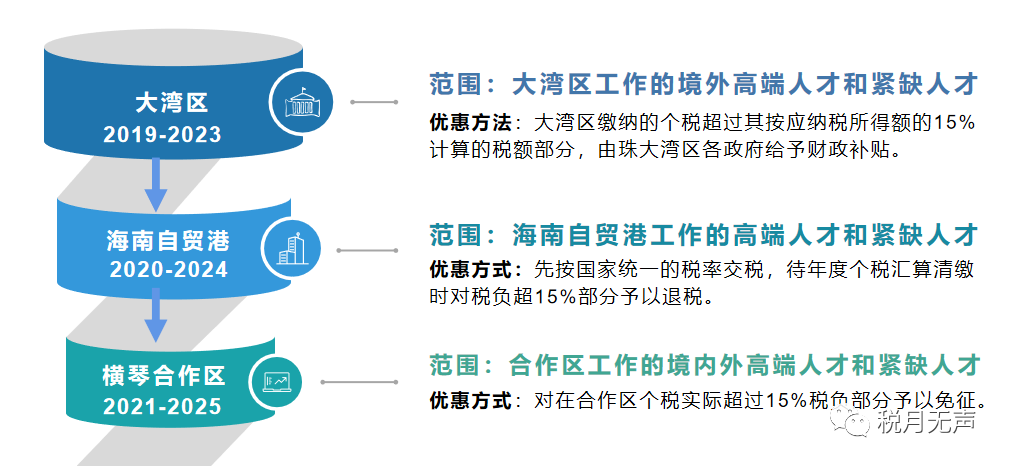 個稅15%(并非所有的個稅,僅限于綜合所得、生產經營所得等)的優惠政策,最早源于大灣區,此后擴展到海南,然后延續到橫琴合作區。其個稅優惠變遷路線如下: