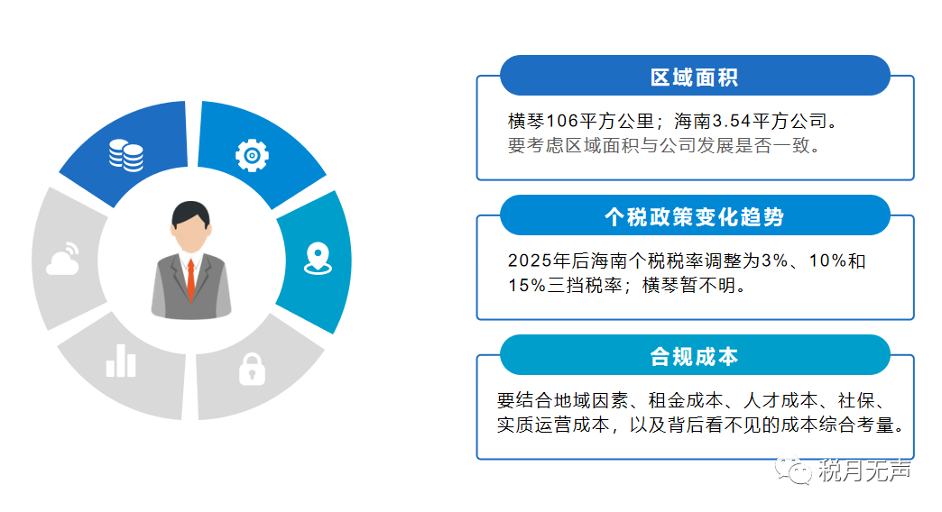結論是未必。須知,無論橫琴還是海南的個稅優惠都是暫時性的過渡政策,橫琴個稅優惠政策暫定時間為2021-2025,海南的個稅優惠政策暫定時間為2020-2024。筆者認為,在優惠地選擇上至少要考慮以下因素: