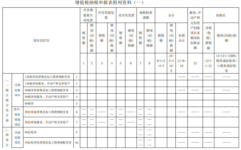 2.附表一:填寫第四部分免稅對應的欄次,如開具普通發票,將免稅銷售額填在19行對應的開具其他發票欄次;如未開具發票,將免稅銷售額填在19行對應的未開具發票欄。