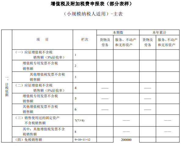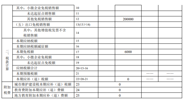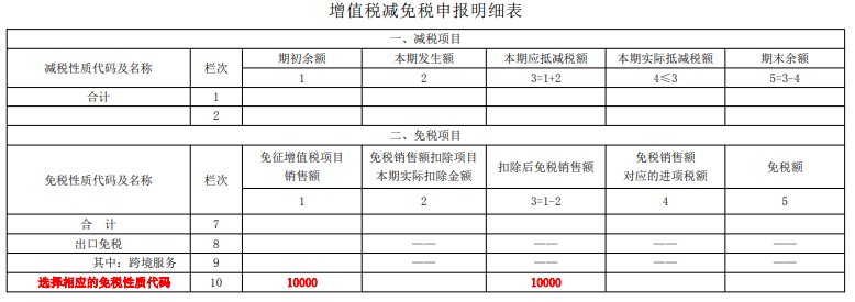 1.增值稅主表:填寫第四項免稅銷售額“其他免稅銷售額”,對應“服務、不動產和無形資產”欄次;