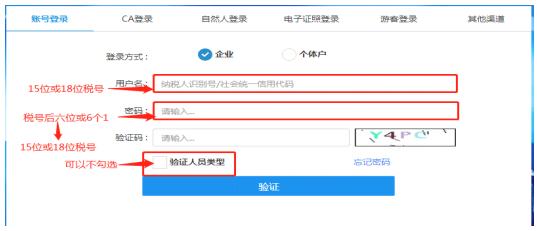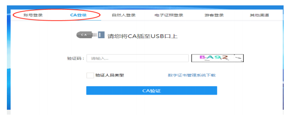 進入登錄主界面,常用“賬號登錄及 CA 登錄”兩種方式登錄