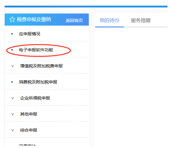 然后選擇“稅費申報及繳納”,在該模塊完成申報表填報。