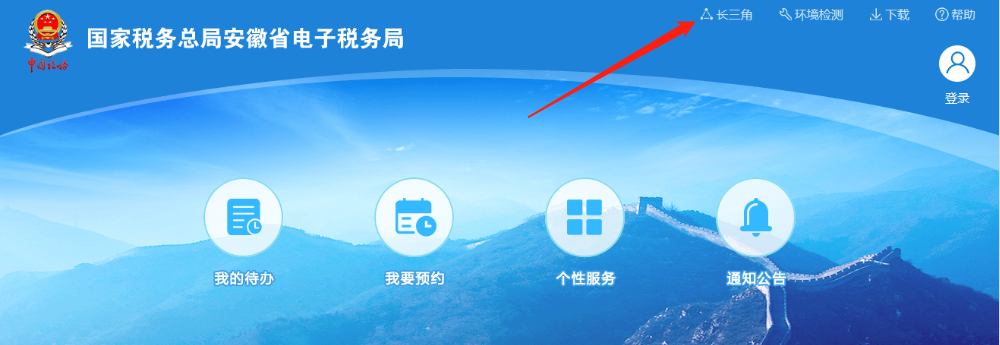 Step1:登陸電子稅務局,點擊首頁“長三角”圖標,進入長三角電子稅務局首頁。