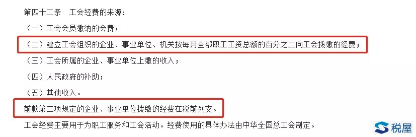 分級繳納: 簡單來說就是交給兩個對象:成立了工會的,企業先算出要交多少工會經費,然后多少比例分別交給工會或者代收的稅局,多少比例交給企業的基層工會。沒有成立工會的企業,在成立工會后再把這部分的經費交給本企業的工會。 所以,不要再問“沒有成立工會是不是不用交工會經費”之類的問題了,沒有這樣的政策。不過有部分地區(如湖南、江蘇等)出臺了關于小微企業工會經費減免的政策,大家可以咨詢當地的總工會。 3 工會經費的賬務處理和稅務處理 對于企業來說,這部分工會經費在取得合理憑證后可以稅前列支,企業所得稅法也規定工會經費不超過工資薪金總額2%的部分,準予扣除: