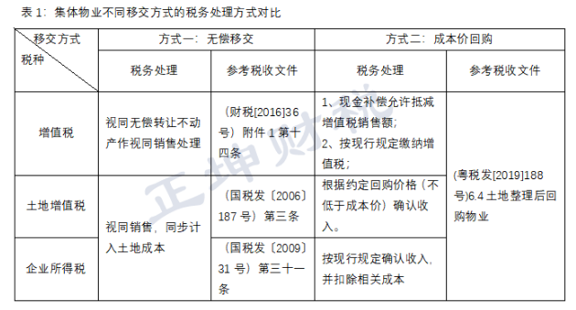 其中,無償移交方式視同無償轉讓不動產,應作視同銷售處理,同時在土地增值稅和企業所得稅中可同步計入土地成本。