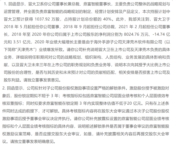 股權行權價格為0需要判斷其定價的合理性,正常的商業行為是需要等價交換,上市公司回購本公司股份支付了真金白銀,以0對價過戶給被激勵對象,被激勵對象在鎖定期是否給上市公司帶來超額貢獻?其貢獻是否與行權當日股票交易價格相當?深交所也是基于此于7月13日繼續回函追問上市公司主要激勵對象與任職期間、負責業務、公司業績之間的關系(如下圖),避免持股計劃和股權激勵成為公司高管團隊無償獲取上市公司股份的工具,進而損害其他股東利益。