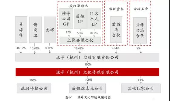 通過股權架構圖,我們會看到,謙尋文化的實際控制人是薇婭的丈夫董海鋒。但謙尋文化并非薇婭夫妻店,而是進行了股權激勵,并引入了兩家知名基金,分別是聯想旗下的君聯資本和馬云旗下的云峰基金。根據謙尋文化官網披露,其計劃2025年申請上市。