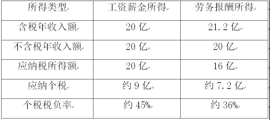 按照這種交易結構,薇婭需要交納多少個人所得稅呢?我們以薇婭年收入20億元來做個稅負測算。從2019年開始,個人所得稅法將工資薪金、勞務報酬、稿酬、特許權使用費等4類所得,統稱為綜合所得,適用3%至45%的超額累進稅率。也就是說,無論薇婭與謙尋文化簽署的是勞動合同還是勞務合同,取得的所得是工資薪金還是勞務報酬,適用的稅率都是相同的,即年應納稅所得額超過96萬元的部分,將適用45%的超額累進稅率。如果薇婭的年收入是20億元,其繳納個人所得稅的稅負見下表: